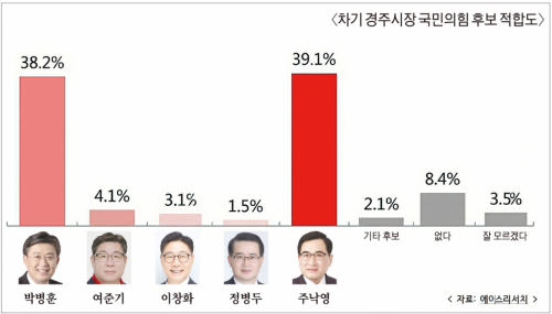 6·3 지선 국힘 후보 적합도… 경주시장 선거 주낙영 vs 박병훈 초박빙 혈투 시작 작성자관리자 등록일 26-03-31 조회95회 출처 경상투데이 보도일자 26.03.29 본문 https://www.gyeongsangtoday.com/news/view.php?idx=262245 박형준, 주진우에 오차범위 밖 우세… 관건은 부동층 향배 [6·3 지방선거 부산 여론조사] “봉화군수 선거, ‘최기영·박현국 선두권 오차범위 내 접전’…국힘 압도적 우세 속 내부 경쟁 격화” 목록